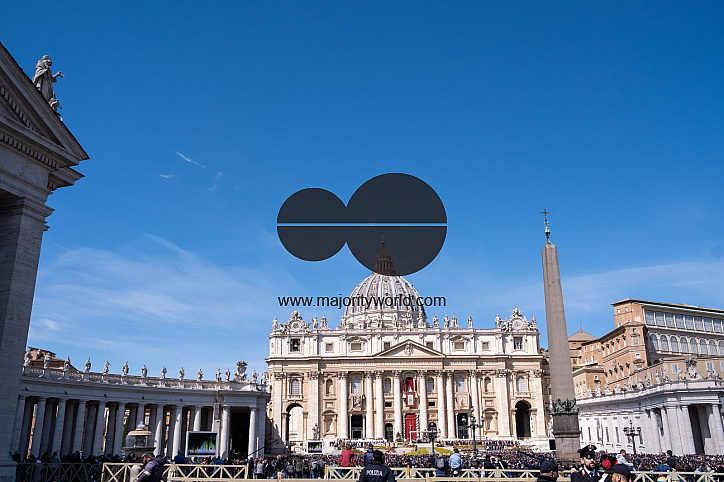 Holy ground. Large crowds at the Easter Sunday mass and Benediction at St Peter's Square in the presence of Pope Francis. State of Vatican City.