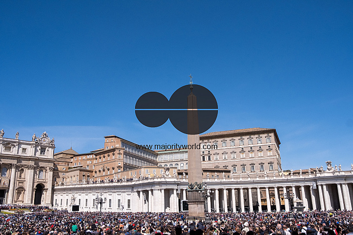 Holy ground. Large crowds at the Easter Sunday mass and Benediction at St Peter's Square in the presence of Pope Francis. State of Vatican City.