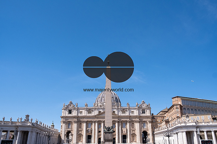 Holy ground. Large crowds at the Easter Sunday mass and Benediction at St Peter's Square in the presence of Pope Francis. State of Vatican City.