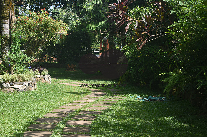 • Description: A landscaped garden with herbal trees, flowers, fruit trees, ponds, fountains, Buddhist statues, garden benches and many more for a relaxing time at an Ayurveda spa. Colombo. Sri Lanka.