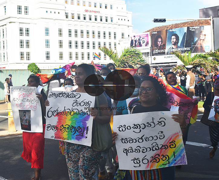 • Description: Colombo, Sri Lanka. 25th June 2022. A pride protest rally to celebrate Pride month was held by the LGBTQ community protesting against the current President and Government of Sri Lanka. The protestors demanded that the President resigns. The Lesbian, Gay, Bisexual, Transsexual, Intersex and Queer community came together to gain visibility, social, and self-acceptance, and demand for legal rights of the community. Pride is a celebration of diversity, equality, unity, and freedom. This was the first time a pride protest march was held in Sri Lanka.