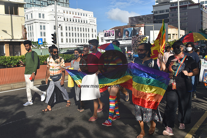 • Description: Colombo, Sri Lanka. 25th June 2022. A pride protest rally to celebrate Pride month was held by the LGBTQ community protesting against the current President and Government of Sri Lanka. The protestors demanded that the President resigns. The Lesbian, Gay, Bisexual, Transsexual, Intersex and Queer community came together to gain visibility, social, and self-acceptance, and demand for legal rights of the community. Pride is a celebration of diversity, equality, unity, and freedom. This was the first time a pride protest march was held in Sri Lanka.