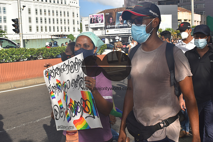 • Description: Colombo, Sri Lanka. 25th June 2022. A pride protest rally to celebrate Pride month was held by the LGBTQ community protesting against the current President and Government of Sri Lanka. The protestors demanded that the President resigns. The Lesbian, Gay, Bisexual, Transsexual, Intersex and Queer community came together to gain visibility, social, and self-acceptance, and demand for legal rights of the community. Pride is a celebration of diversity, equality, unity, and freedom. This was the first time a pride protest march was held in Sri Lanka.