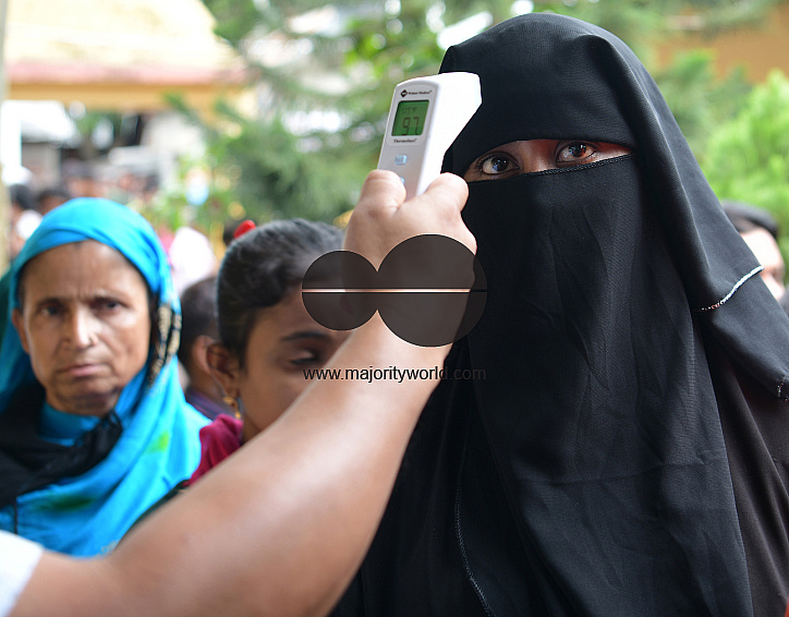 • Description: Election staff members with an electronic voting machine (EVM) during the counting of votes of the Tripura Assembly By-Election, at a counting centre in Agartala. Tripura, India.