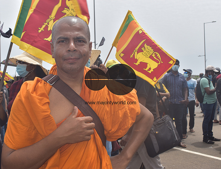 Colombo, Sri Lanka. 7th July 2022. Budhist Monk. Thousands of protesters stormed the Sri Lankan president's official residence, president's secretariat, prime minister's official residence and set fire to the prime minister's private residence as anger in
