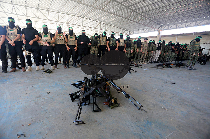 • Description: Gunmen from the Izz al-Din al-Qassam Brigades, the military wing of Hamas, during an anti-Israel military march in Gaza City, Gaza Strip. Palestine.