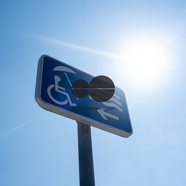 Sign indicating the accessibility of the beach to people with disabilities in Saint-Cast-le-Guildo, a commune in the Côtes-d'Armor department of Brittany in northwestern France.