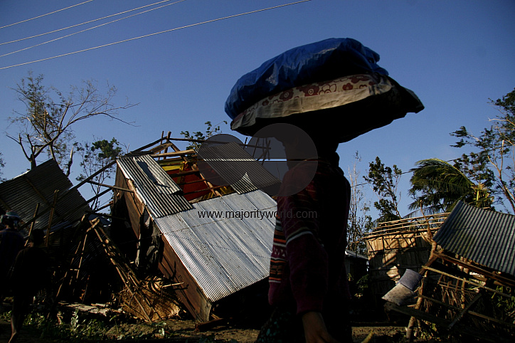 A victim tries to salvage impoverish belongings from the wreckage following the disastrous hit of the cyclone SIDR. The cyclone smashes the coastal area of Bangladesh causing huge damage of lives and properties. Almost three thousand dead bodies have been recovered with many more missing. Khulna , Bangladesh. November 20, 2007.
