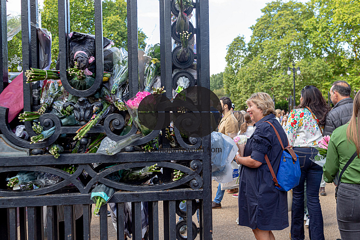 • Description: London, United Kingdom.11th September 2022. A large number of people have gathered to lay floral tributes at the gates of the Buckingham Palace as Britain mourns the death of Queen Elizabeth II.
