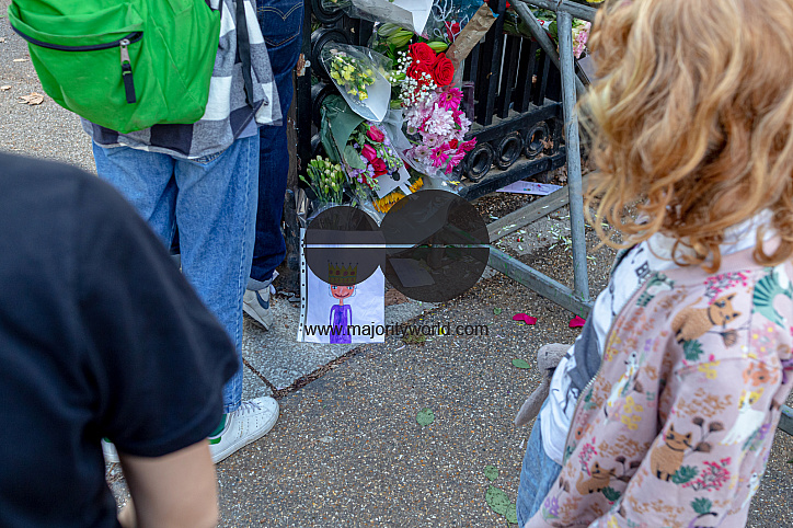 • Image Description: London, United Kingdom.11th September 2022. A large number of people have gathered to lay floral tributes at the gates of the Buckingham Palace as Britain mourns the death of Queen Elizabeth II.
