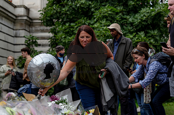 • Image Description: London, United Kingdom.11th September 2022. A large number of people have gathered to lay floral tributes at the gates of the Buckingham Palace as Britain mourns the death of Queen Elizabeth II.