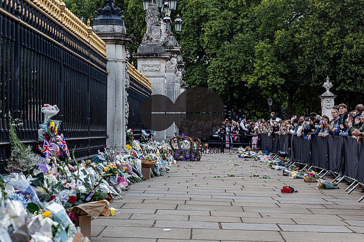 London, United Kingdom.11th September 2022. A large number of people have gathered to lay floral tributes at the gates of the Buckingham Palace as Britain mourns the death of Queen Elizabeth II.