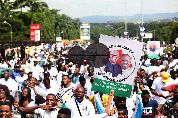 • Description: Abuja, Nigeria. September 26th 2022. Thousands of supporters of Labour Party’s (LP) presidential candidate, Peter Obi, staged a peaceful walk on a highway in the capital city of Abuja, ahead of the 2023 general elections.