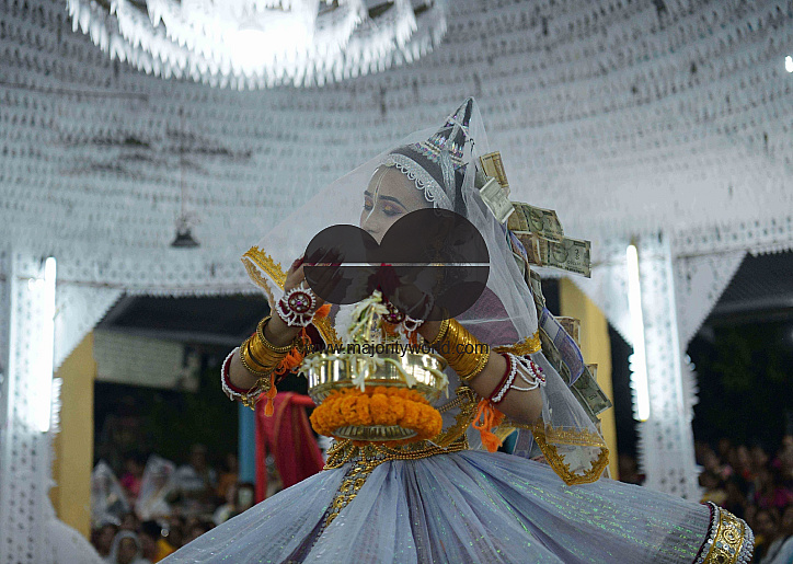 • Description: Artists wearing traditional attire perform during the Maha Raas Festival on the occasion of Kartik Purnima, in a Manipuri Temple at Agartala, the capital city of India's northeastern state of Tripura. India.