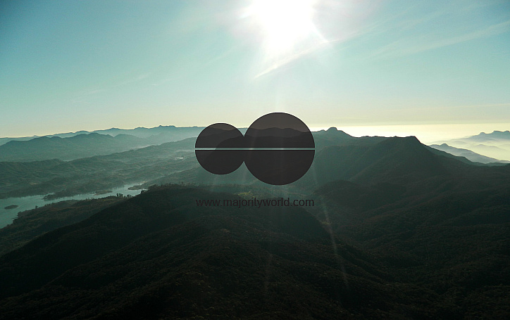 A view of the sun rise through distant mountains from the Sri Pada mountain range. The dawn of the day. The rays of sun spreads over the mountains provide picturesque sceneries. Adams Peak, Sri Lanka.