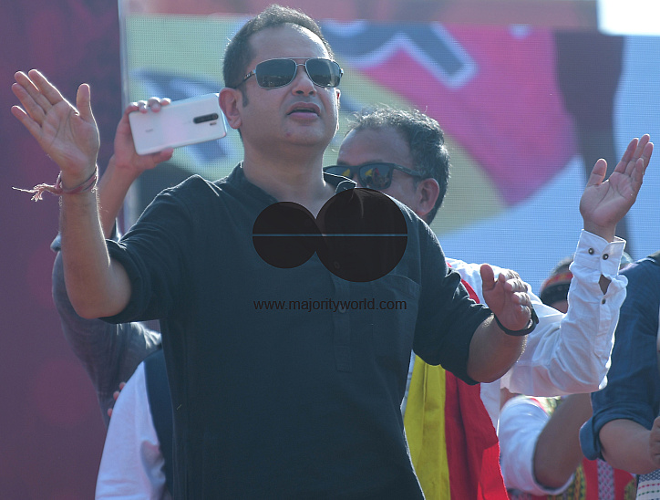 • Description: Tripura royal scion and president of the regional party "Tipra Motha" (Tipraha Indigenous Progressive Regional Alliance), and former Indian football captain Bhaichung Bhutia, during a public rally demanding "Greater Tipraland", in Agartala. Tripura, India.