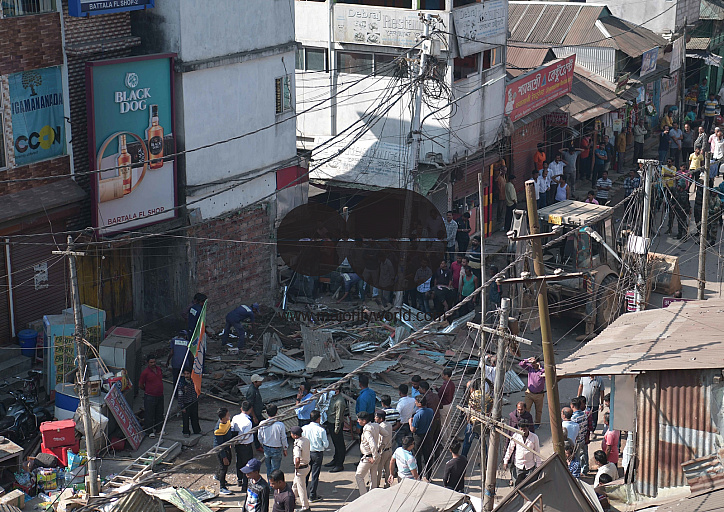 AMC (Agartala Municipal Corporation) workers destroying illegal liquor shops along with police personnel at the Battala market area at Agartala. Tripura, India.