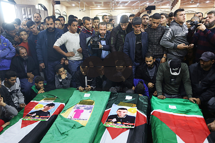 • Description: Mourners gather around the coffins of four Palestinian migrants who died in Tunisia, during their funeral at a mosque in Rafah in the southern Gaza city. Palestine.