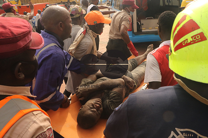 • Image Description: Rescue teams at the site of a 2-story building under construction that collapsed in Abuja, Nigeria’s capital city, Feb. 2, 2023. One person was confirmed dead, four persons rescued alive with serious injury and many were trapped under the rubbles after th