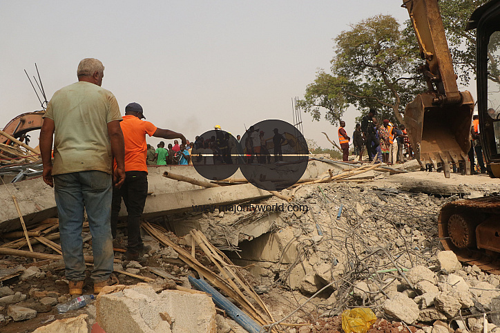Rescue teams at the site of a 2-story building under construction that collapsed in Abuja, Nigeriaâs capital city, Feb. 2, 2023. One person was confirmed dead, four persons rescued alive with serious injury and many were trapped under the rubbles after the two-story building collapsed. Nigeria.