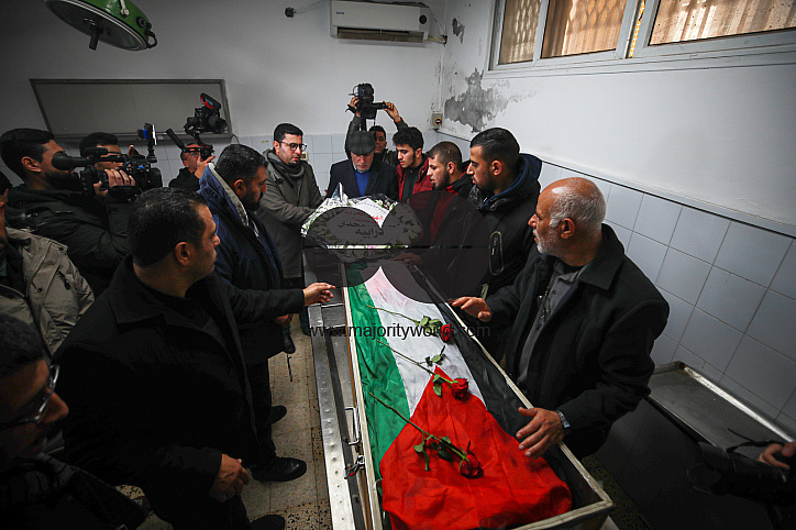 • Image Description: Gaza City. Palestine. 12th February 2023. The family of the Palestinian martyr Youssef Darabih take a last look at their son who died in the devastating earthquake in Turkey.