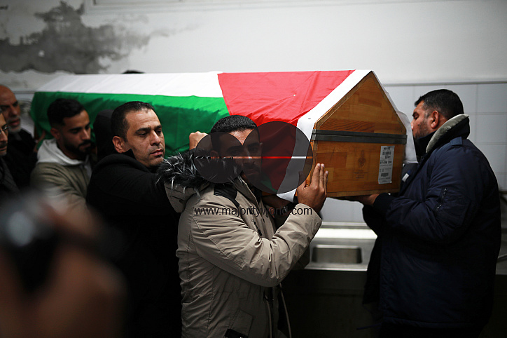 Gaza City. Palestine. 12th February 2023. The family of the Palestinian martyr Youssef Darabih take a last look at their son who died in the devastating earthquake in Turkey.
