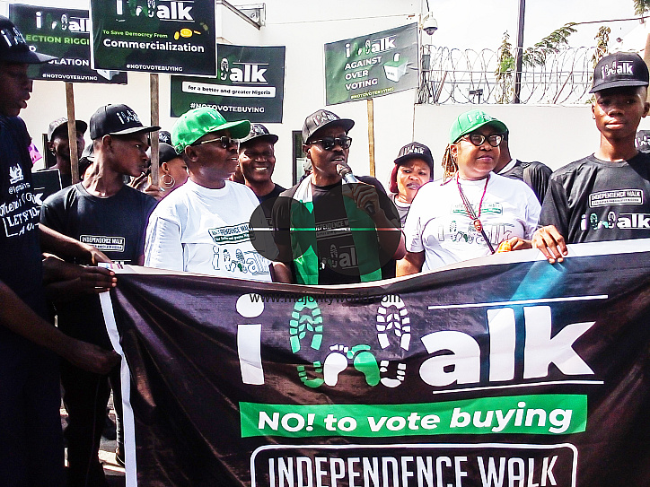 Participants during the Independence Walk from Tafawa Balewa Square (TBS) to the American Embassy to commemorate the 62nd independence anniversary of Nigeria at Tafawa Balewa Square. Lagos, Nigeria.