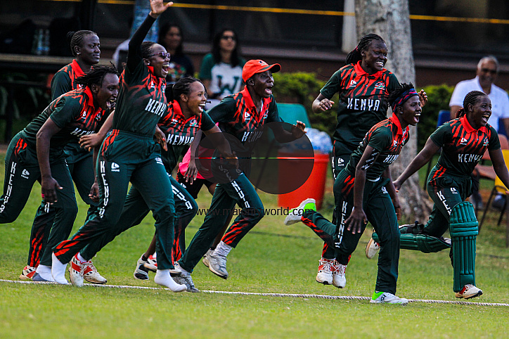 Kenya players celebrates their win against Tanzania during the Africa women Quadrangular T20 tournament at Gymkhana grounds, Nairobi, Kenya.