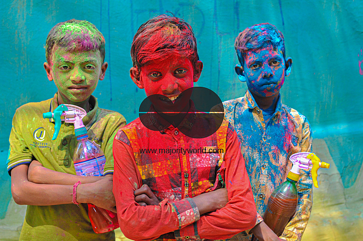 • Description: Children at a tea garden with painted faces in rainbow colours celebrating the annual Hindu festival of colors, known as Holi festival, marking the onset of spring. Sylhet, Bangladesh.
