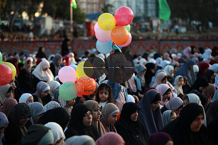• Description: Palestinians perform Eid al-Fitr prayers. Eid al-Fitr, which marks the end of the holy month of Ramadan, is celebrated by all Muslims around the world. Gaza City. Palestine.