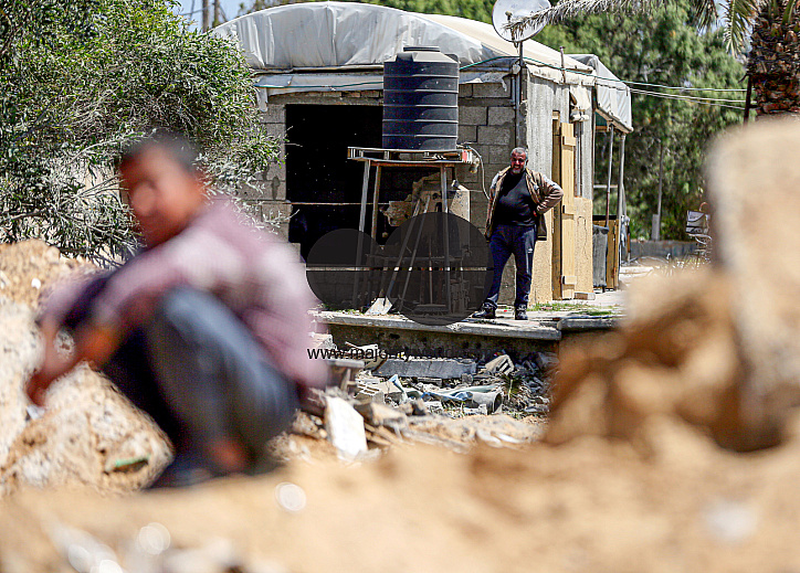 • Description: Palestinians inspect a site following Israeli airstrikes in the central Gaza Strip. The Israeli army launched heavy air strikes and exchanged fire with Gaza militants following the death of a Palestinian prisoner in Israeli custody who is on hunger strike. Gaza City. Palestine.