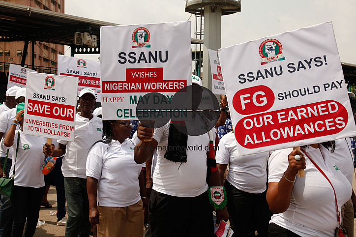 Nigerian workers gather for the International Workers' Day at the eagles square in Abuja. May 1st is a day set aside to celebrate the achievement of workers globally. Nigeria.