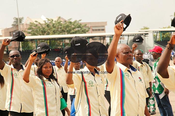 Nigerian workers gather for the International Workers' Day at the eagles square in Abuja. May 1st is a day set aside to celebrate the achievement of workers globally. Nigeria.