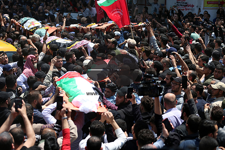 Gaza City. Palestine. 9th May 2023. Palestinians attend the funeral ceremony of Tariq Izzeddin, one of the leaders of the Jerusalem Brigades, and his two children killed in an Israeli raid. 13 people, including women and children were killed and 20 injur