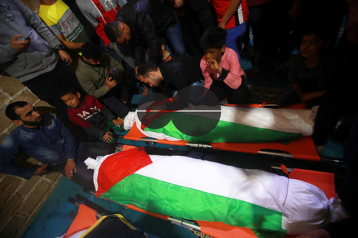 • Description: Gaza City, Palestine. 9th May 2023. Mourners gather around the body of Palestinian boy Ali Ezzedine, son of Islamic Jihad member Tareq Ezzedine, at a morgue in Gaza. They were both killed in a pre-dawn Israeli air raid. The Israeli army said it killed three leaders of the Islamic Jihad militant group in air strikes, which left at least nine dead according to the Palestinian territory's Hamas-controlled health ministry, adding that women and children were among them.