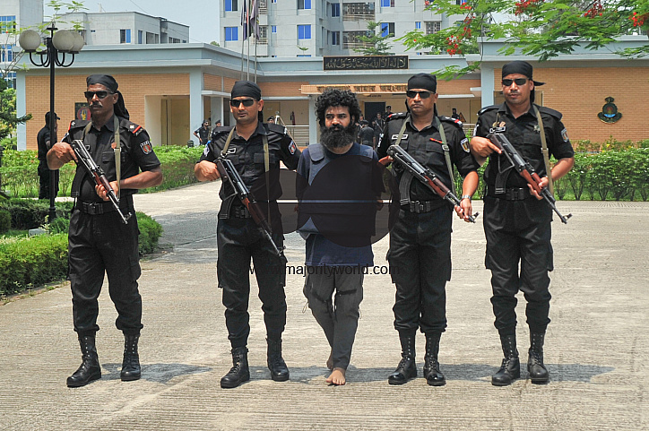 After the arrest, the Shura member of the new militant organization 'Jamatul Ansar Fil Hindal Sharqiya' and head of Dawati branch, Abdullah Maymun alias Sheikh of Sylhet. The Rapid Action Battalion (RAB) has arrested four dangerous terrorists from Barashala area of Sylhet airport. Sylhet, Bangladesh.
