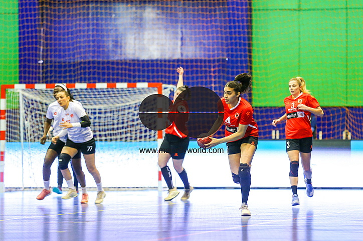Amina Hesham Accoush of Al Ahly during the 2023 women African Handball confederation match between Al Ahly Dames and Moknine of Tunisia in Cairo, Egypt.