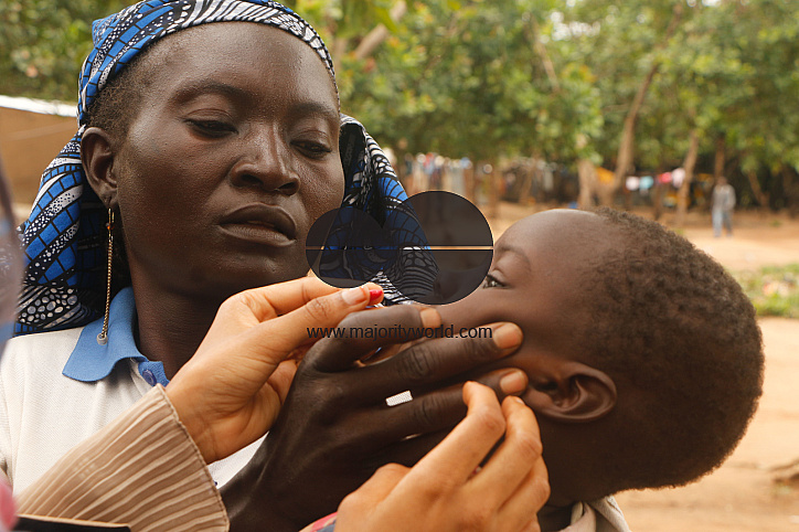 People are seen receiving free medical care at a makeshift shelter at the Durumi IDP Camp in Abuja. The Durumi IDP Camp houses over 2,000 internally displaced persons. People displaced are sheltered in camps due to insurgency in the northeastern provinces