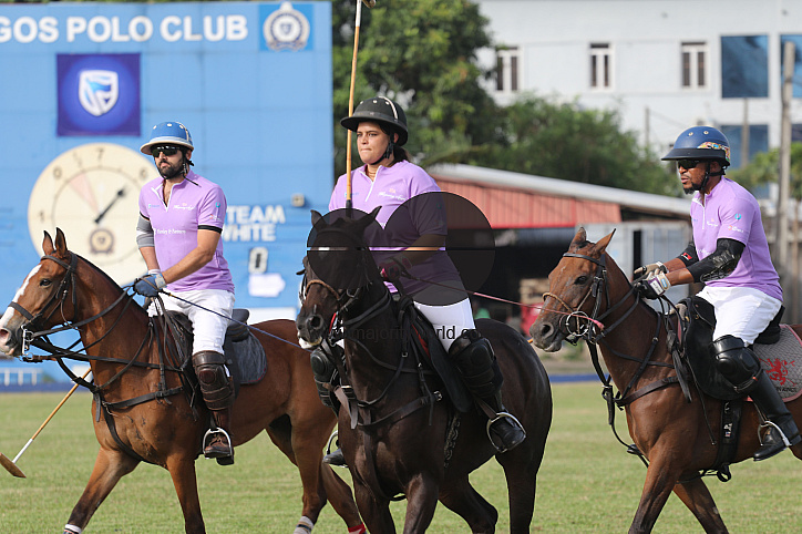 • Description: Polo players compete for the ball during the Ladies Polo invitation tournament between Team White vs Team Purple, at the Lagos polo club, Ikoyi, Lagos, Nigeria.