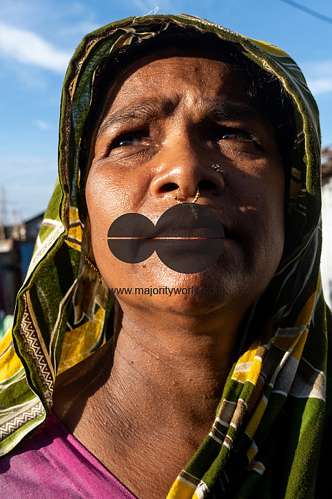 Portrait of bangladeshi woman. The slum of Duari Para in Dhaka, the capital of Bangladesh, home to mainly climate migrants from the southern countryside where they have suffered the effects of climate change: rising water levels, soil erosion and salinisation. Bangladesh.