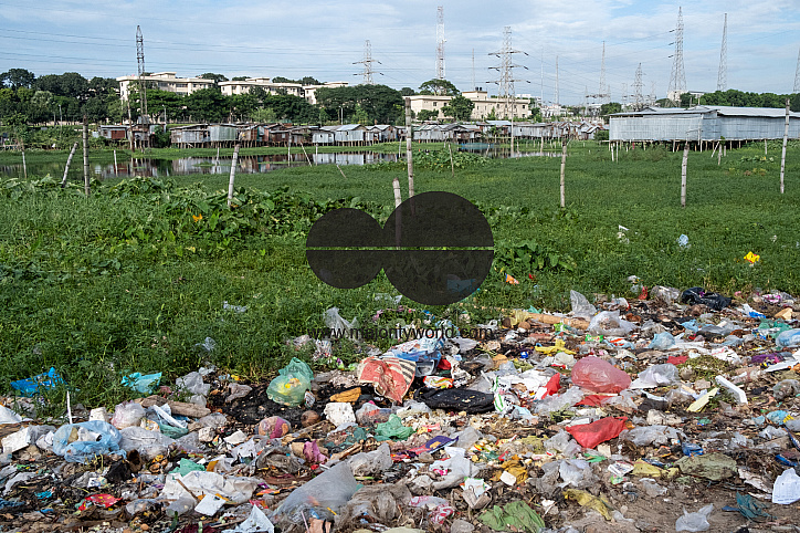 The slum of Duari Para in Dhaka, the capital of Bangladesh, home to mainly climate migrants from the southern countryside where they have suffered the effects of climate change: rising water levels, soil erosion and salinisation. Bangladesh.