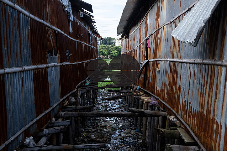 The slum of Duari Para in Dhaka, the capital of Bangladesh, home to mainly climate migrants from the southern countryside where they have suffered the effects of climate change: rising water levels, soil erosion and salinisation. Bangladesh.
