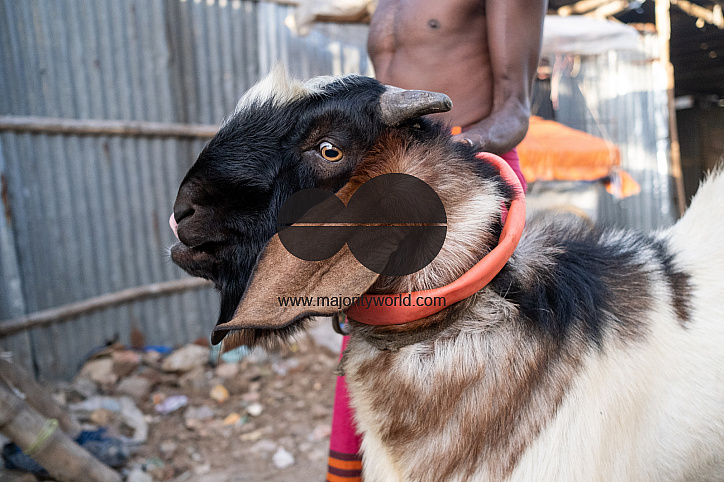 Goats roaming the streets. The slum of Duari Para in Dhaka, the capital of Bangladesh, home to mainly climate migrants from the southern countryside where they have suffered the effects of climate change: rising water levels, soil erosion and salinisation