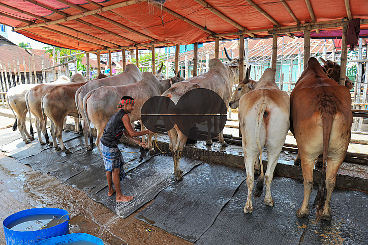 • Description: A trader bathes his cow at the Kazir Bazar market. Livestock from different parts of the country are on sale at the Kazir Bazar livestock market ahead of the upcoming Eid-ul-Adha Festival. Sylhet, Bangladesh.