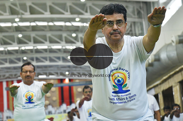 • Description: Tripura CM Manik Saha, along with other ministers, government officials and students perform yoga on International Day of Yoga in Agartala. Tripura, India.
