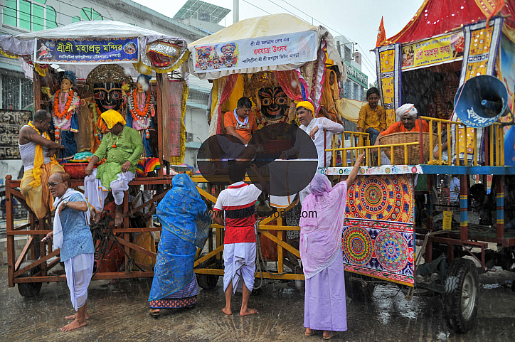 • Description: Devotees take part with a colorful Ratha Cart at the Reverse Ratha Yatra Festival while its raining at Rikabibazar point of Sylhet, Bangladesh.