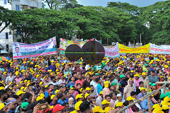 • Image Description: Sylhet, Bangladesh. 9th July 2023. A "Youth rally" is being held in Sylhet under the initiative of BNP's three branches and affiliated organizations. The rally started with the national anthem at Sylhet Alia Madrasa ground in the joint initiative of Jubo