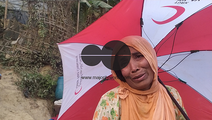 Portrait of a woman crying at the Balukhali refugee camp. Approximately 919,000 Rohingya refugees are living at the Kutupalong and Nayapara camps in Cox’s Bazar region — which have grown to become some of the largest and most densely populated camps in th