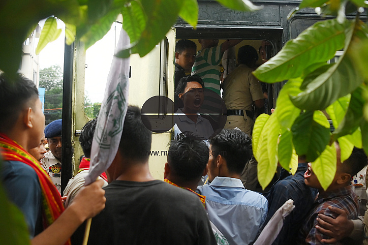 • Description: The members and supporters of the TSF (Twipra Students Federation) are protesting and demanding the introduction of Kokborok in Roman Script and passage of the 125th Constitutional Amendment Bill during their statewide 12-hour strike in Agartala. Tripura, India.