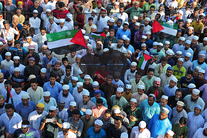 • Description: Sylhet, Bangladesh. 20th October 2023. The Bangladesh National Imam Somiti Sylhet Metropolitan backed by a large number of protesters took to the streets in Sylhet to show their support for Palestine. The supporters chanted slogans against the brutal and illegal occupation of Palestine by Israel.